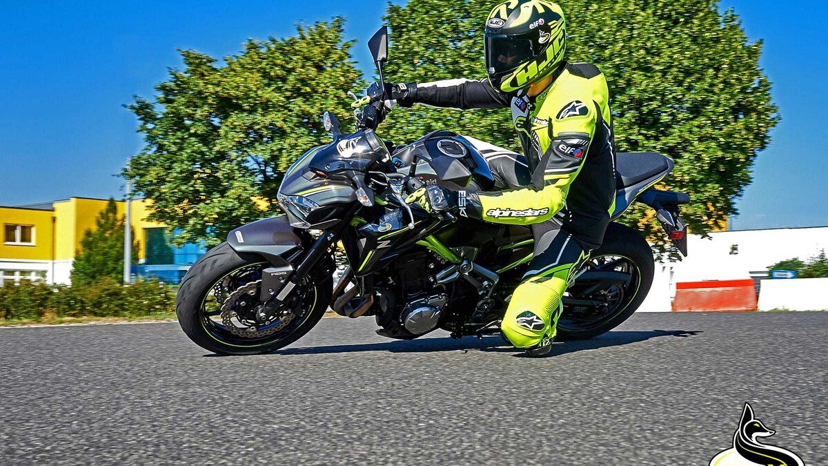 Durch die angenehm neutrale Sitzposition habe ich mir ein ebensolches Handling erwartet. Und auch bekommen. Tendenziell sind Nakedbikes eher auf der agilen Seite, hie und da gibt es dann im Topspeedbereich leichtes Lenkerflattern oder ein Pendeln um die Längsachse. Nicht so bei der Z900. Hier haben die japanischen Ingenieure genau den richtigen Spagat zwischen Agilität und Stabilität gefunden. Selbst bei brutal schnellen Kurven liegt die Z900 satt auf der Straße und zieht genau den Strich durch die Ecken, den man beim ersten Einlenken vorgegeben hat. Ähnlich wie bei der Kawasaki Z650 glänzt die große Schwester mit einer tollen, vertrauenserweckenden Ausgewogenheit: nicht nervös, nicht kippelig, aber auch nicht schwerfällig oder stur. Genau so muss sich ein Nakedbike dirigieren lassen. Angenehm: Selbst in großer Schräglage sind stets noch Linienkorrekturen möglich. Das gibt viel Sicherheit und Vertrauen – selbst wenn man eine Ecke mal etwas zu optimistisch angepeilt hat.